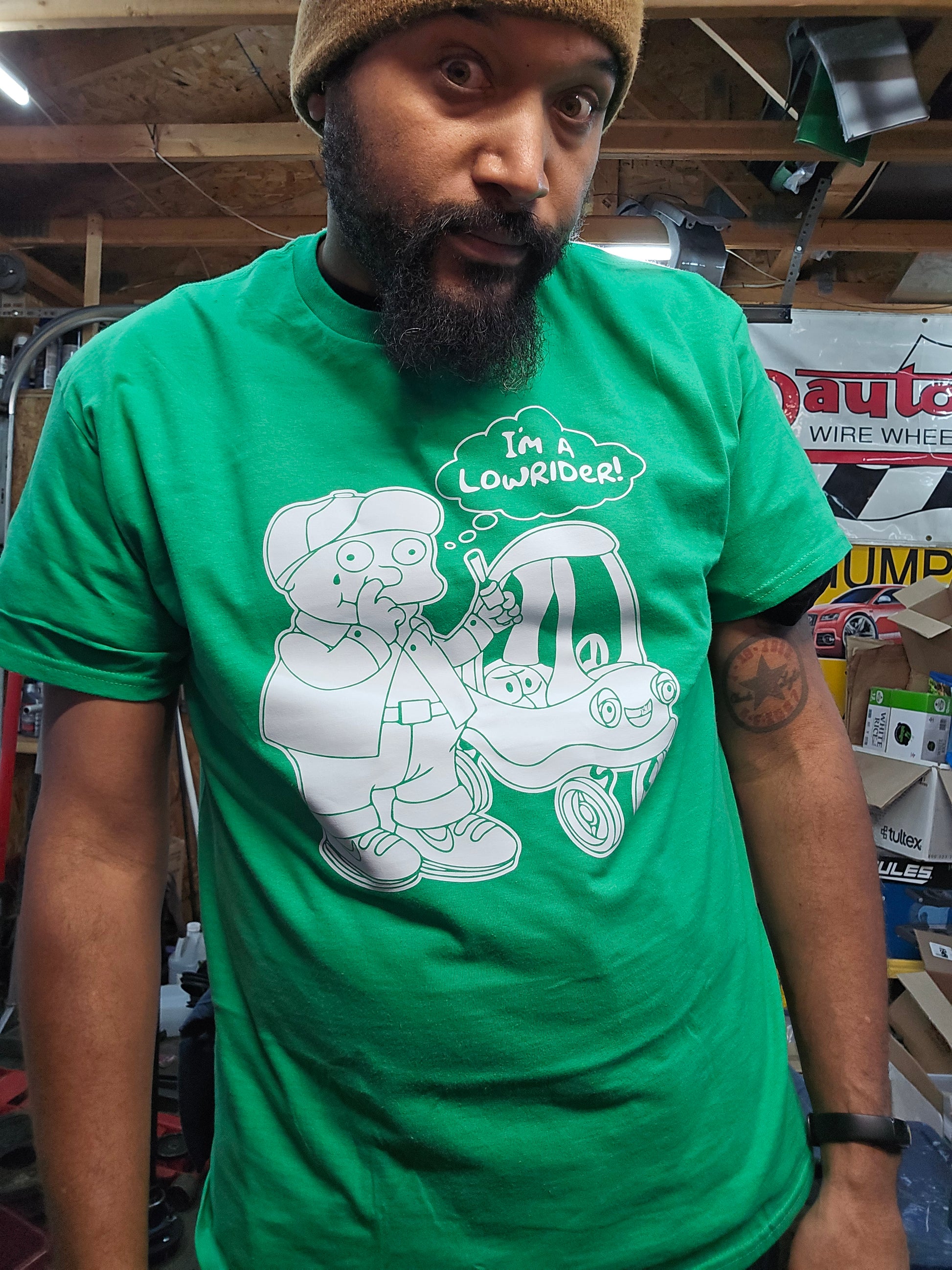 Chuck Crager nose pickin' T-shirt, holiday edition! Same design with artwork in the front. You can have whatever color you want, as long as it's red or green